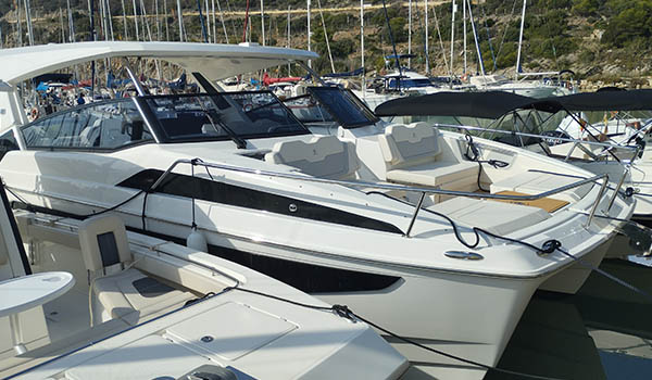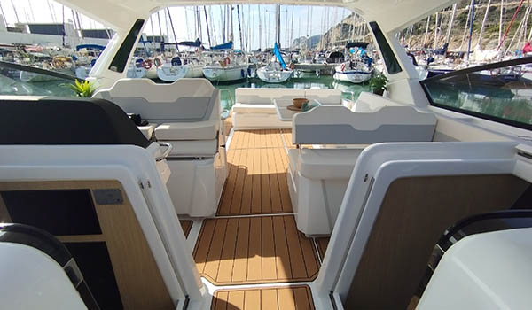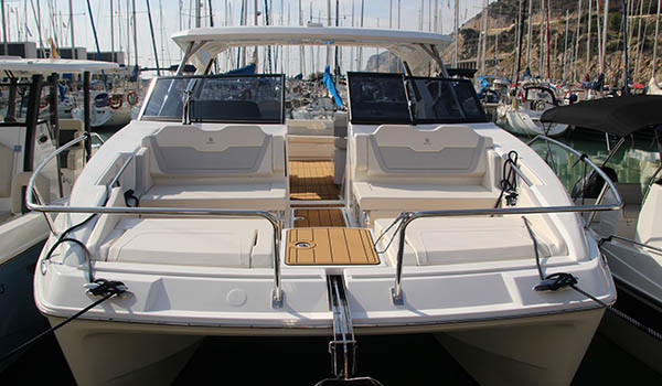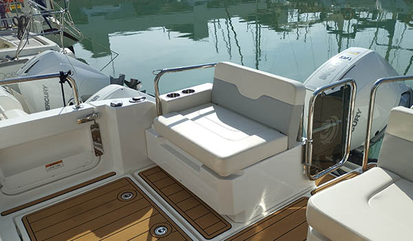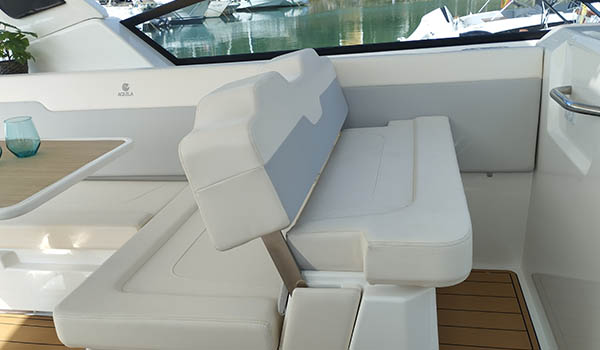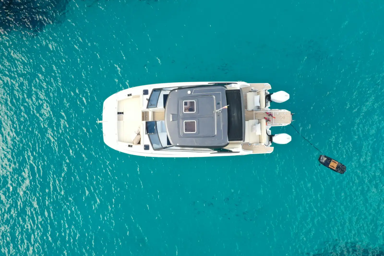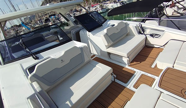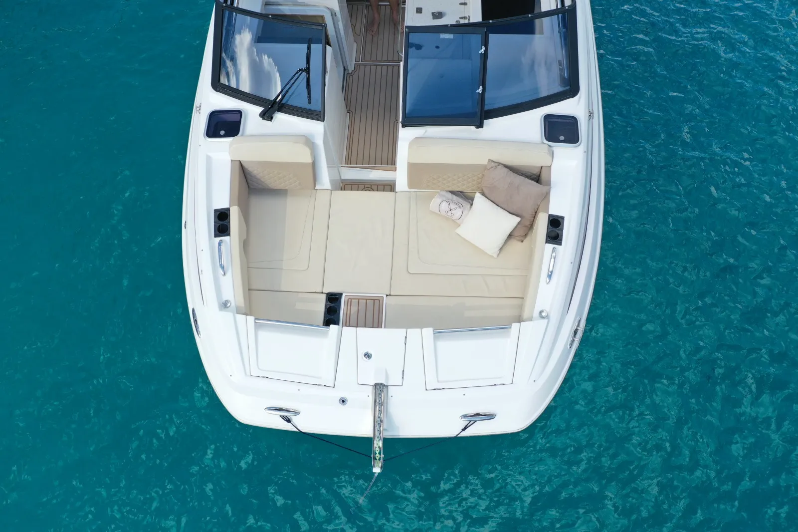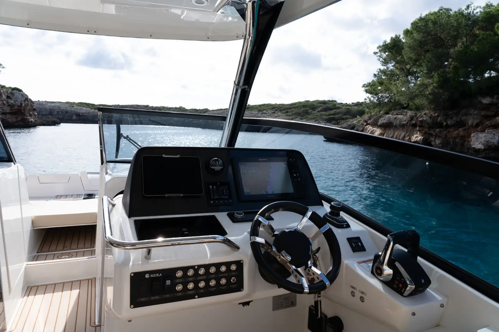 Aquila 32 Sport — Lista para navegar. Lancha deportiva con 500 horas, equipada con doble Mercury Verado V8 300 HP, joystick, autopilot y plotter Raymarine Axiom 2 Pro S 12″. Interior listo para disfrutar: teca sintética, WC eléctrico, microondas y toldo retráctil en el hardtop. Capacidad para 12 pasajeros + tripulación, ideal tanto para charter como para uso privado en grupo. Un barco versátil, completo y con todo el equipamiento a punto.
