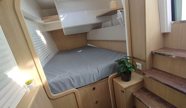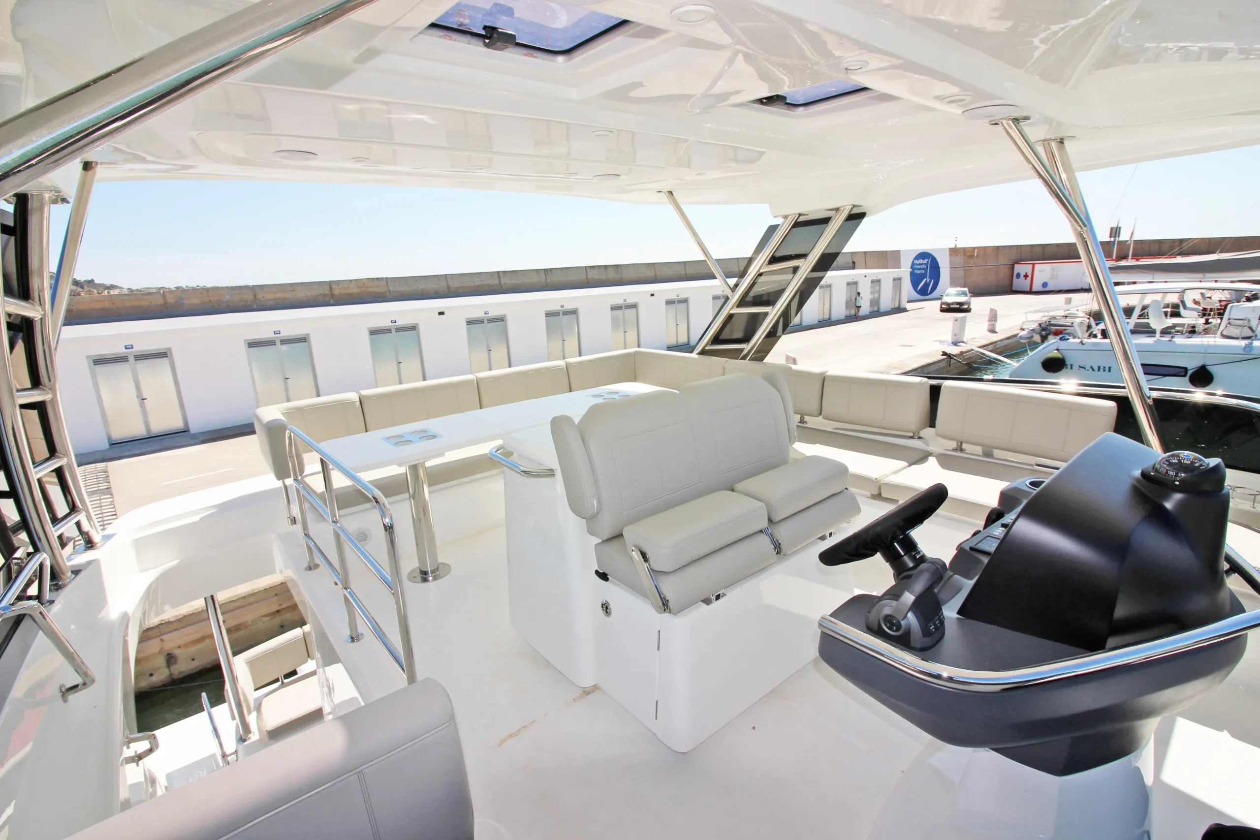 Versión armador ofrece un espacio exclusivo con acabados de alta calidad. Equipado con motores Volvo Penta de 300 HP (90 horas de uso), generador Kohler, aire acondicionado, paneles solares y potabilizadora de agua, garantiza una navegación autónoma y eficiente. Su flybridge incluye barbacoa eléctrica, frigorífico de 85L y hard top con iluminación.