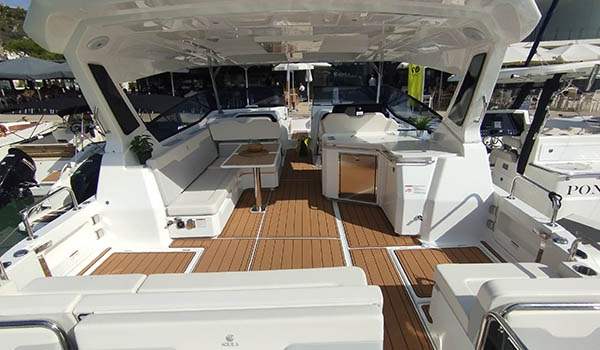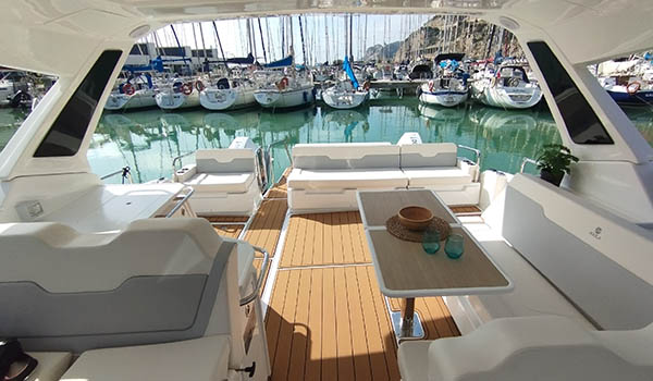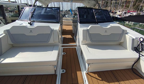 Aquila 46 Yacht tres cabinas, tres baños, 2 x 320 HP Volvo Penta D4 con display Volvo de 7” en el puesto de mando, corta cabos, hard top con soportes de acero inoxidable e iluminación en flybridge, escotillas practicables, ancla Delta de 70 lbs con cadena, cocina de inducción eléctrica (dos fuegos), inversores/cargadores, antifouling en casco, kit de amarre, cuna de transporte y retractilado. Entrega: Primavera 2026