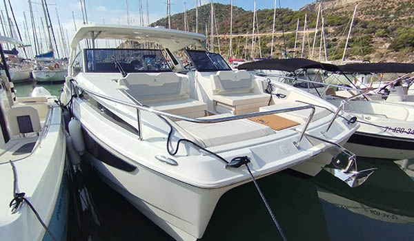 El Aquila 36 Sport es un catamarán de motor diseñado para combinar elegancia, rendimiento y funcionalidad, ofreciendo una experiencia única tanto para la navegación recreativa como para escapadas de lujo. Este modelo destaca por su diseño deportivo, sus amplios espacios y su excelente maniobrabilidad, ideal para disfrutar del mar con comodidad y estilo.