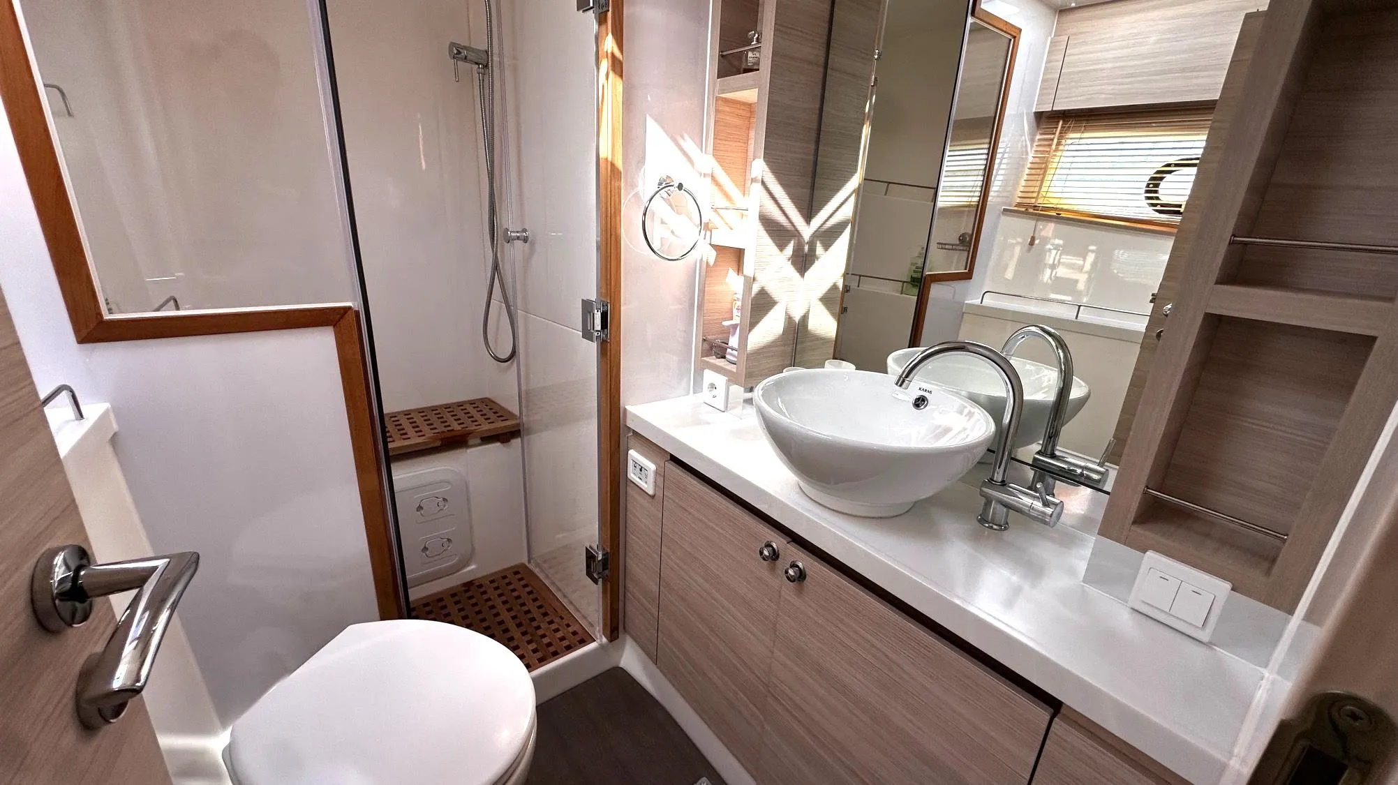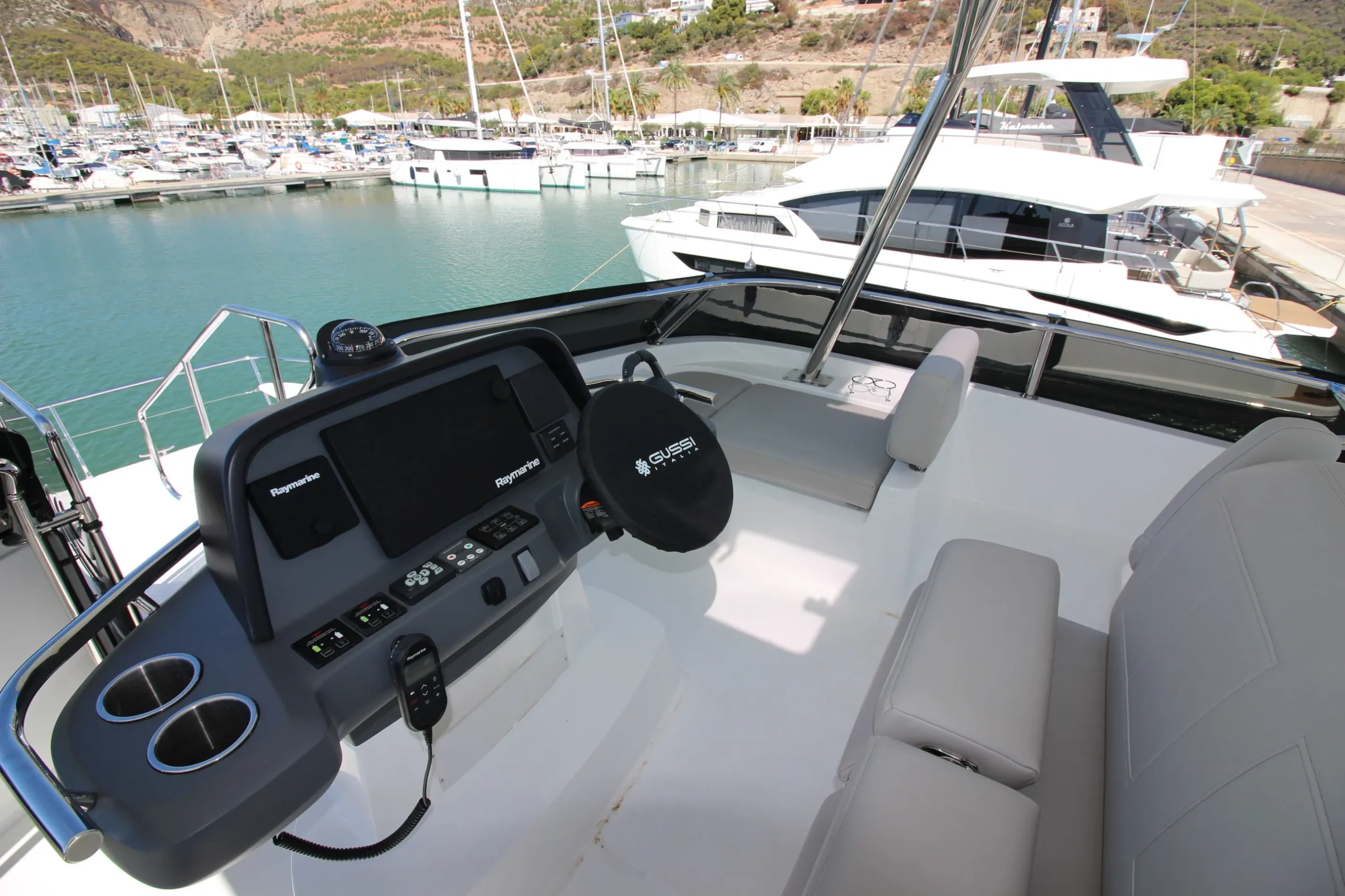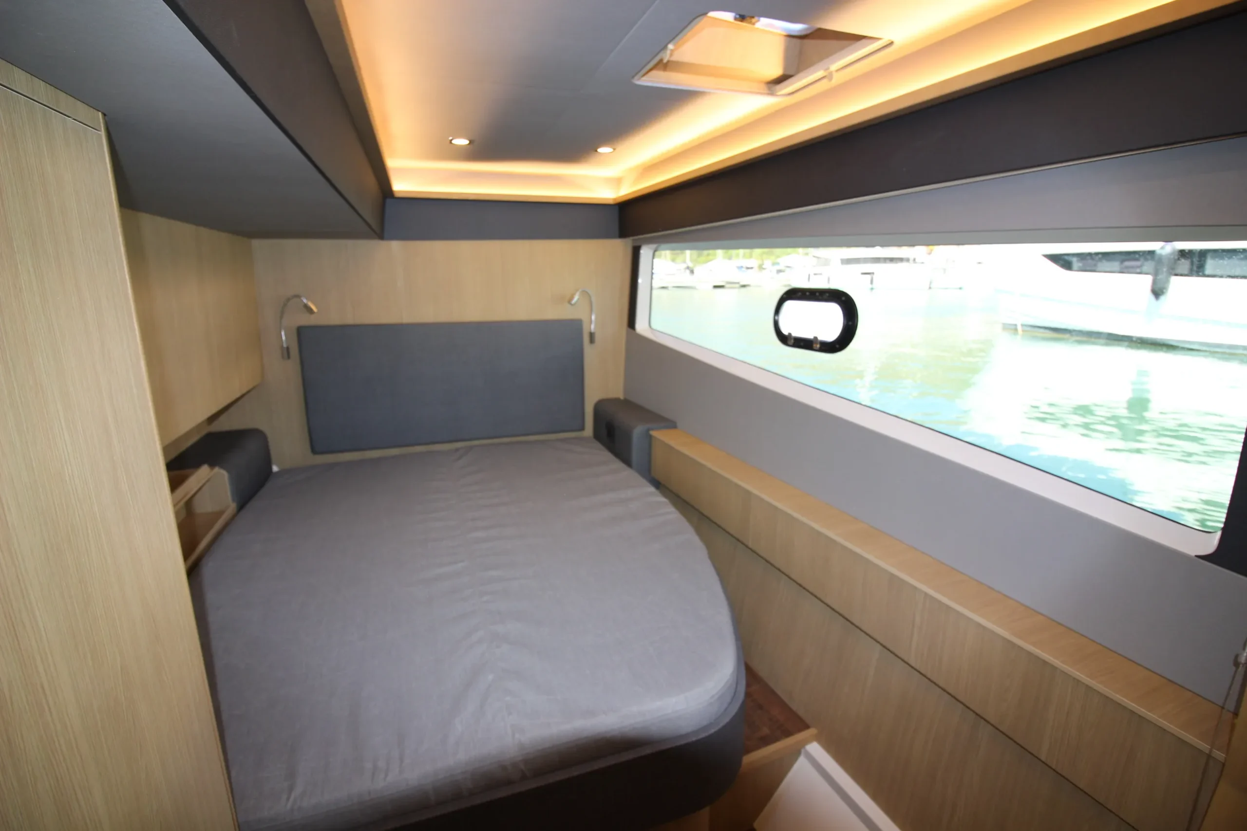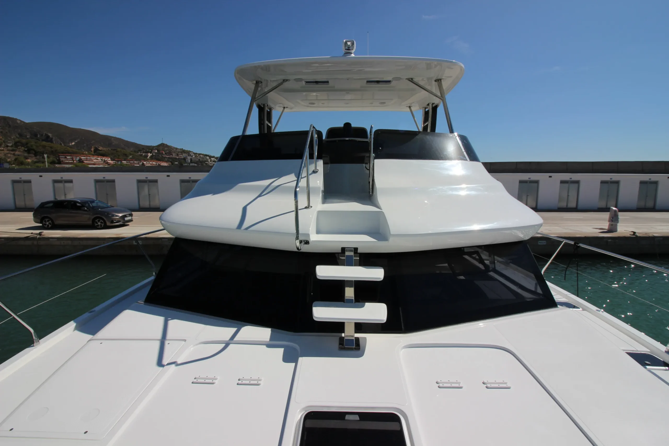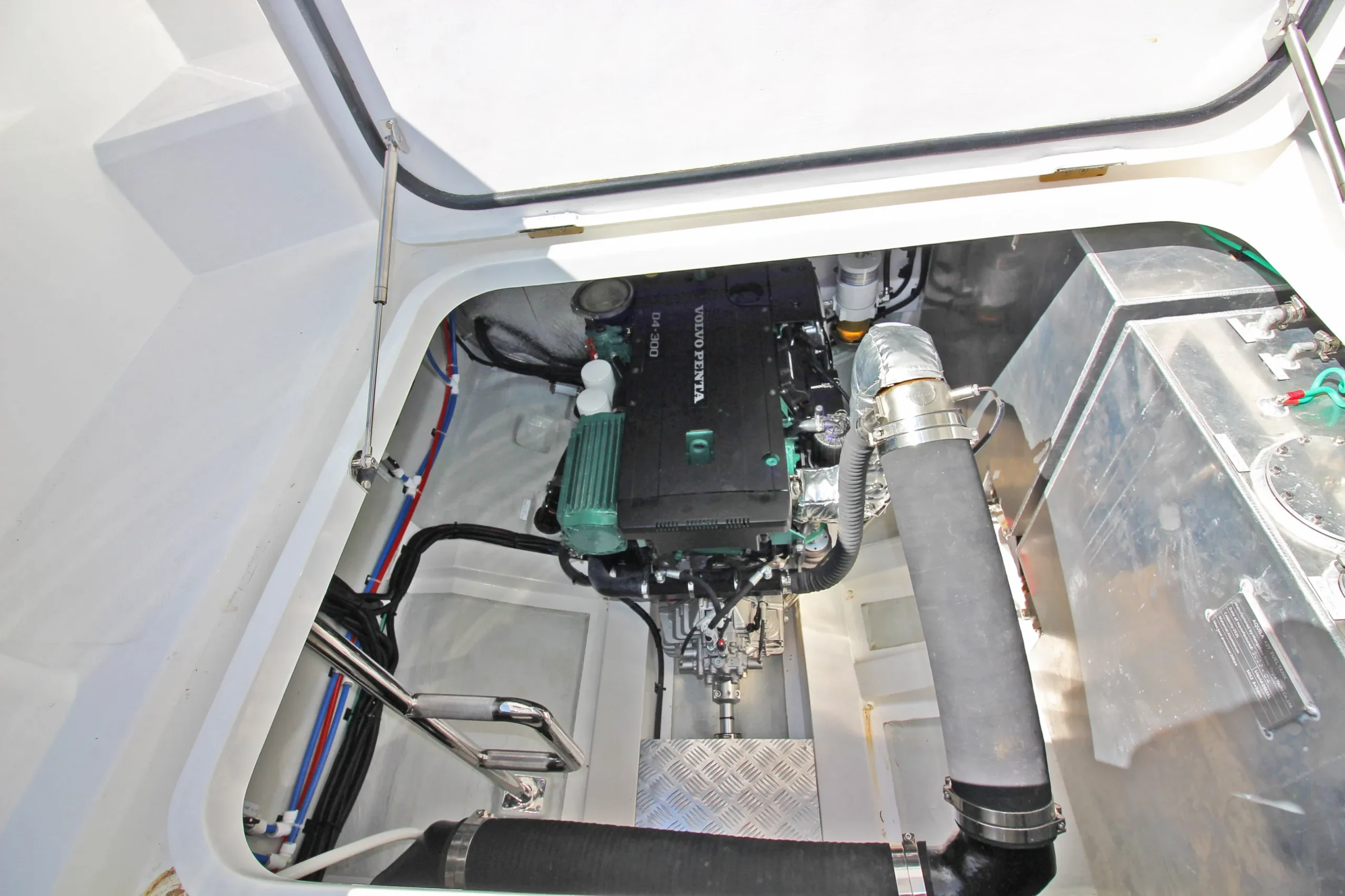 Equipado con 2 motores Volvo D4 de 320 HP y apenas 30 horas de uso, ofrece una navegación suave y estable gracias a sus bulbos de proa optimizados. Con 3 cabinas y 3 baños, salón luminoso y cocina totalmente integrada. Con extras como aire acondicionado, potabilizadora, grúa de dinghy y sistema de sonido Fusion multizona, este modelo combina rendimiento y confort premium.