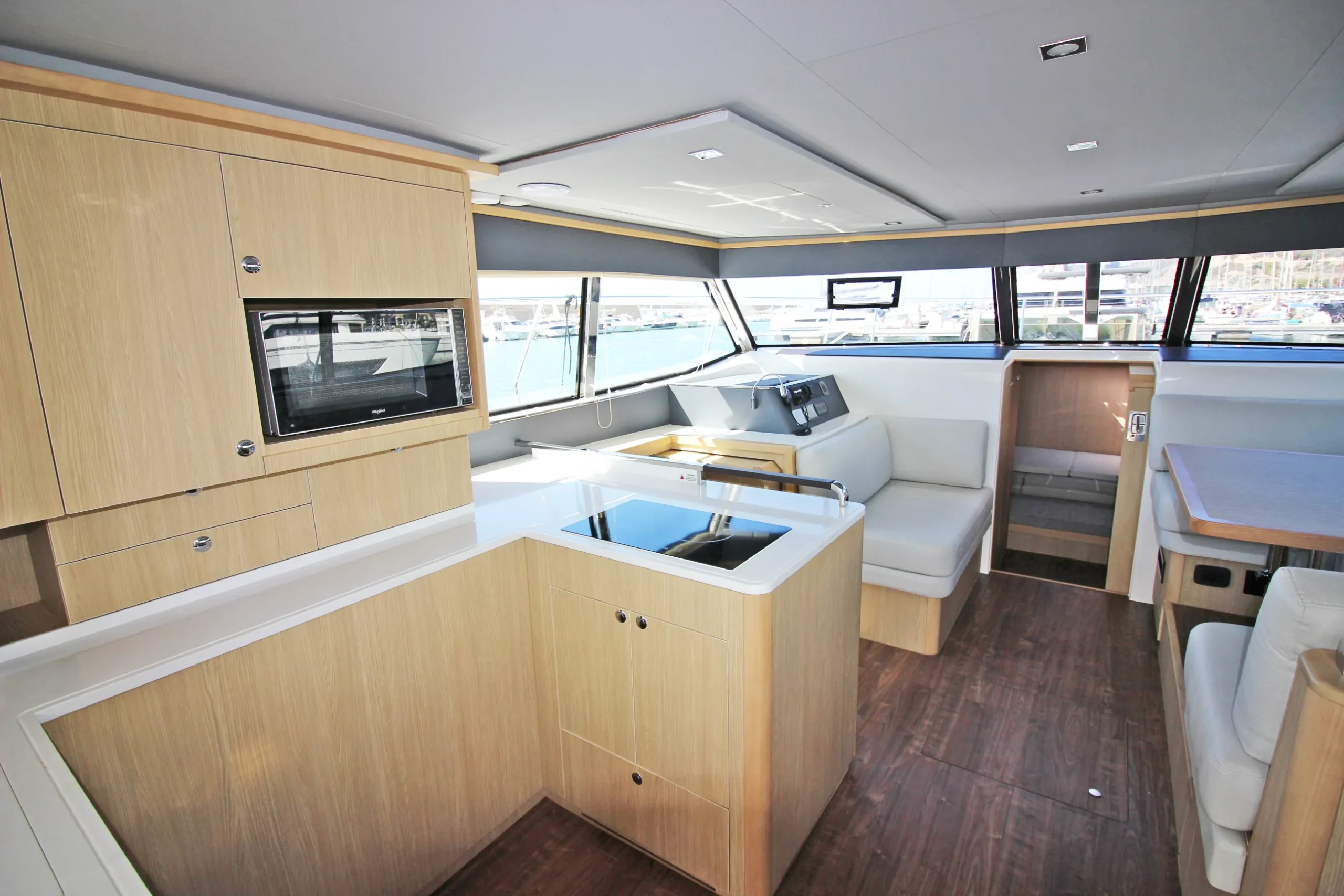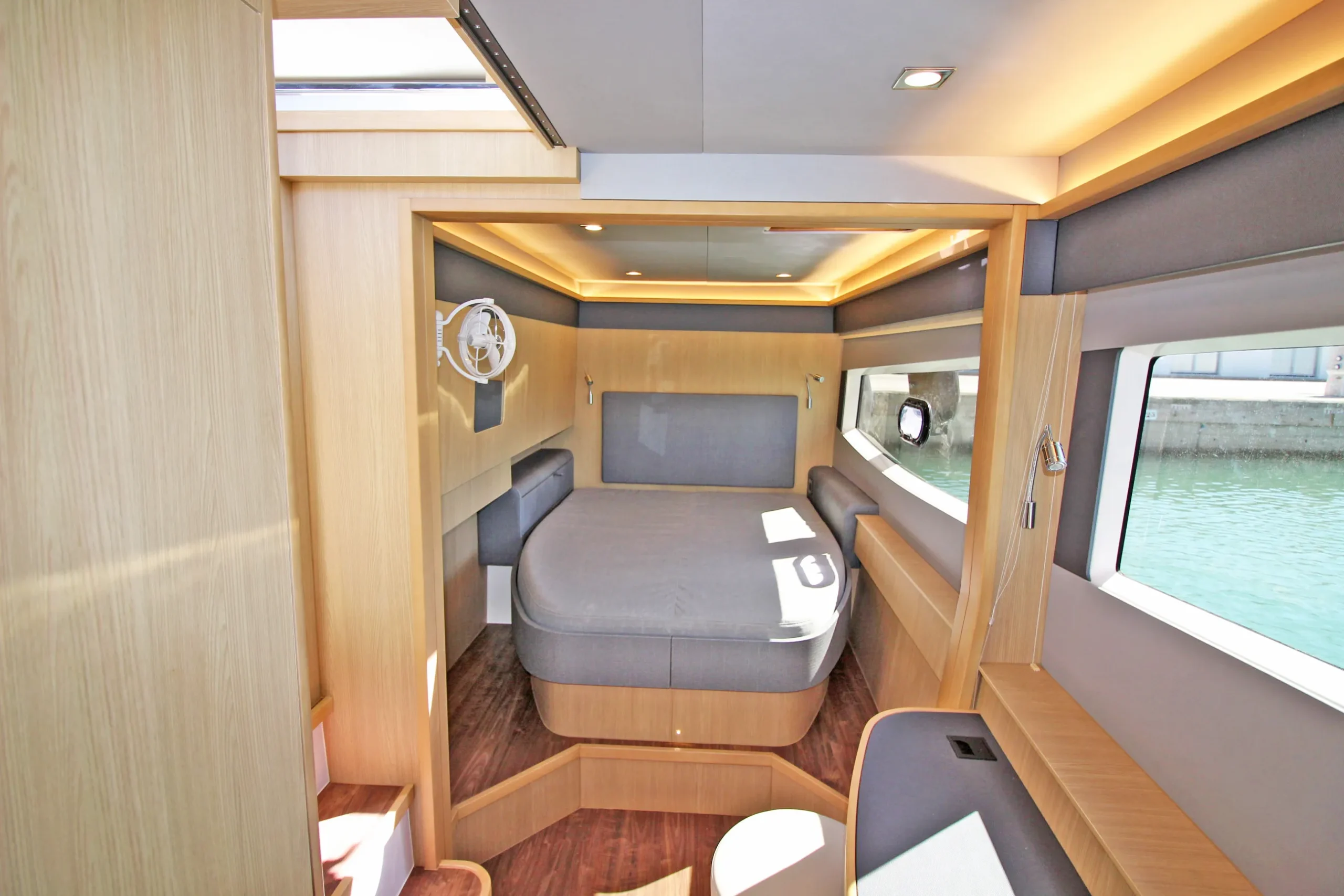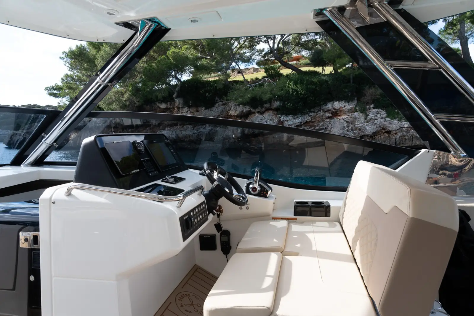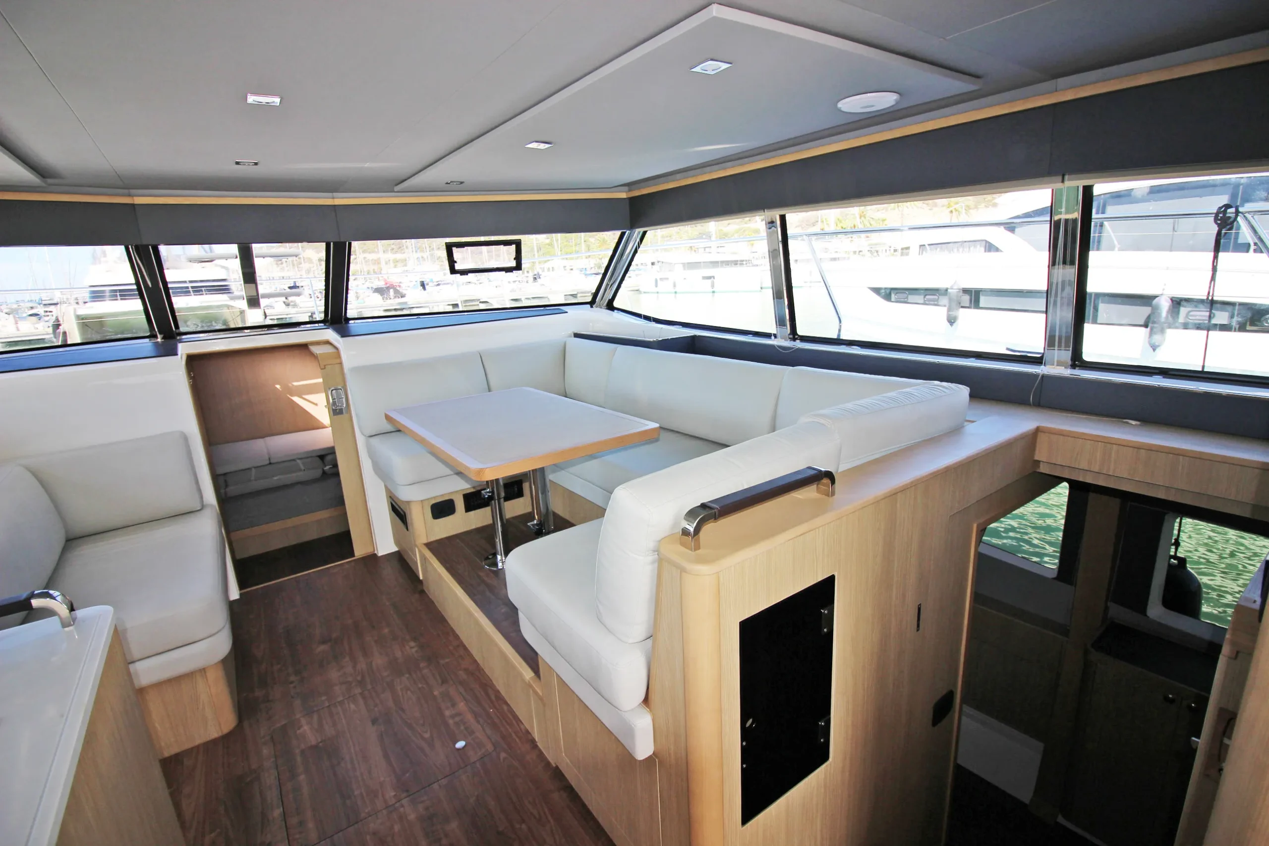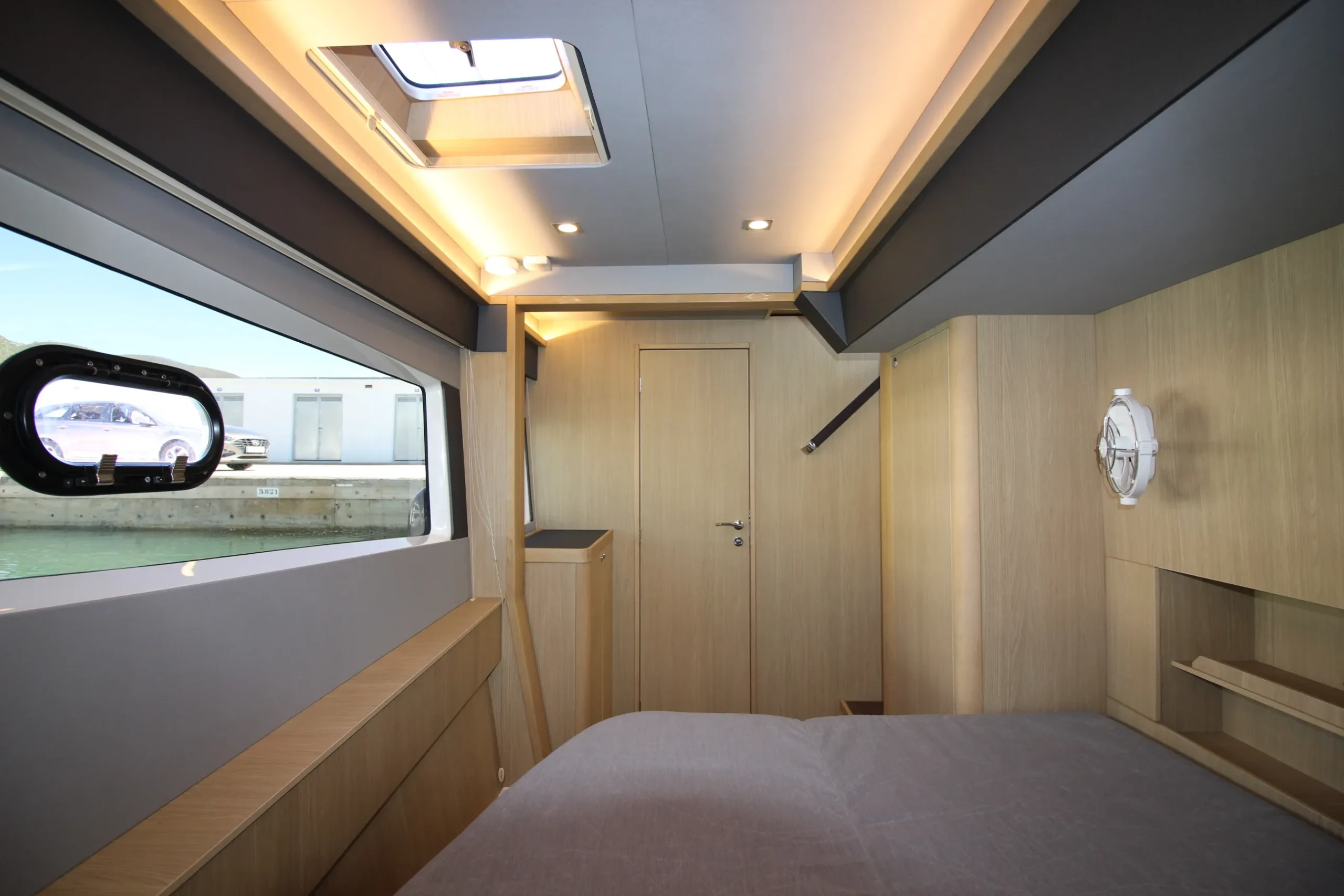 Equipado con 2 motores Volvo D4 de 320 HP y apenas 30 horas de uso, ofrece una navegación suave y estable gracias a sus bulbos de proa optimizados. Con 3 cabinas y 3 baños, salón luminoso y cocina totalmente integrada. Con extras como aire acondicionado, potabilizadora, grúa de dinghy y sistema de sonido Fusion multizona, este modelo combina rendimiento y confort premium.